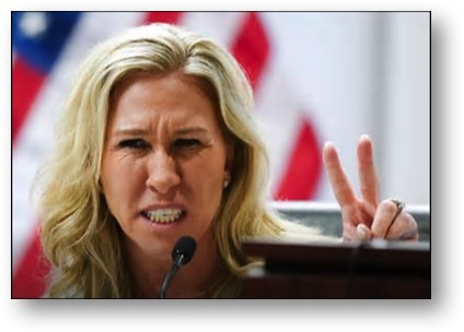 That's right; it's none other than Marjorie Taylor Greene, the QAnon Bitch, deranged MAGA cult member, and key player in America's new freak show (a.k.a. the right-wing faction in Congress).
